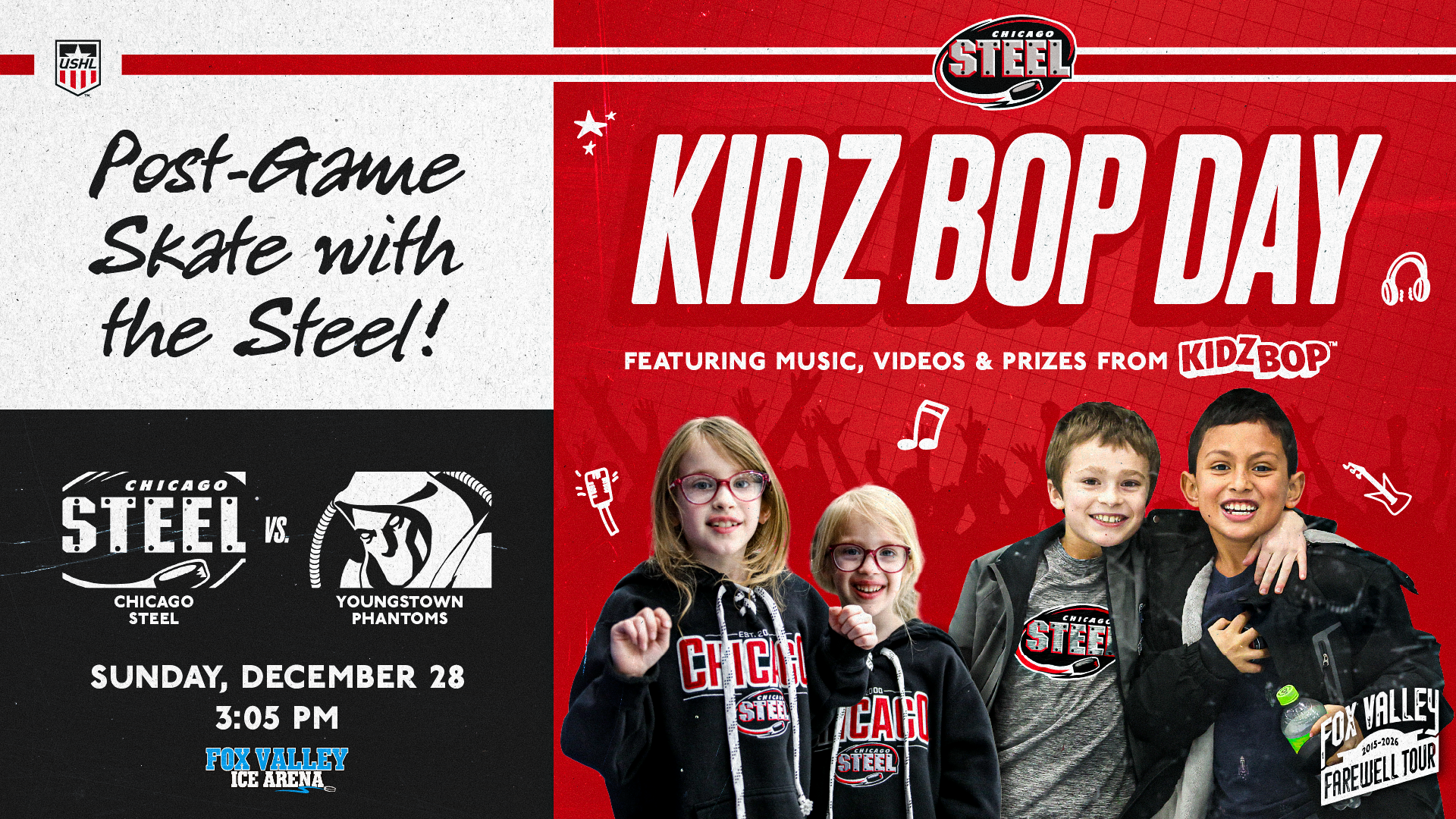 For more information, call 855-51-STEEL or visit ChicagoSteelHockeyTeam.com.